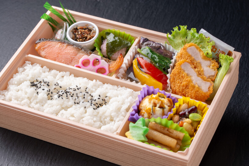 自家製ひれかつと鮭の西京焼きのお弁当です。